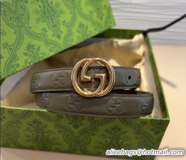 Good Looking Gucci GG Embossed Leather Belt 2cm with Interlocking G Buckle 1127 Green/Gold 2024