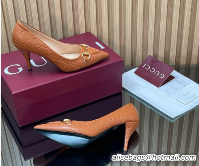 Classic Hot Gucci GG Leather Pumps 8.5cm with Horsebit 853466 Brown 2026