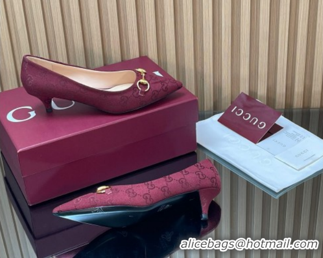 Luxury Gucci GG Canvas Pumps 4.5cm with Horsebit Burgundy 1218058 2026