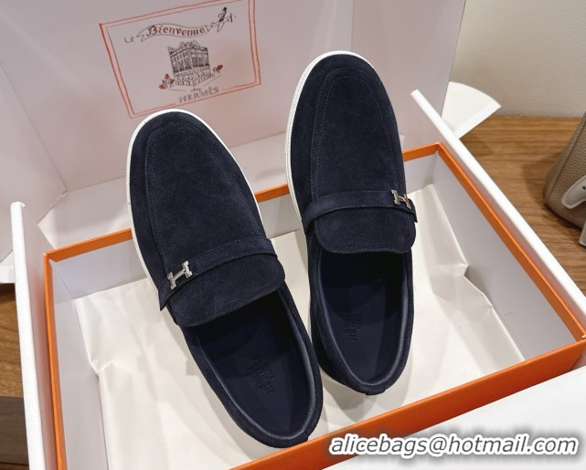 Good Looking Hermes Like Loafers in Suede Dark Blue 2025 H082009 0820102