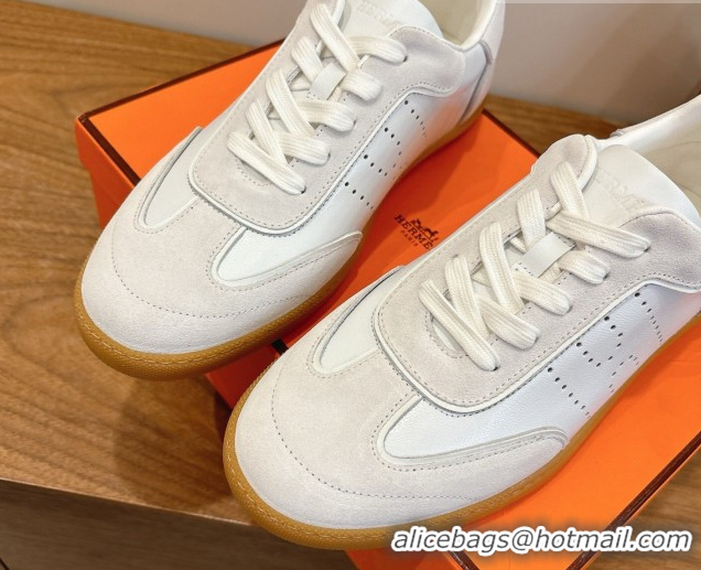 > Shoes Plaza > Hermes Shoes > Super Quality Hermes Match Sneakers in Suede and Calfskin Leather White/Grey 2026 H261863