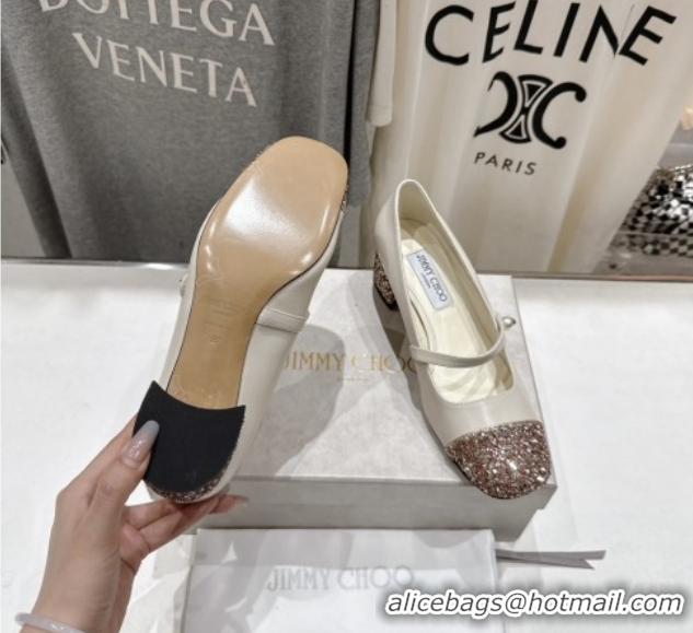 Good Looking Jimmy Choo Elisa 45 Pumps in Nappa Leather & Glitter White 5111741