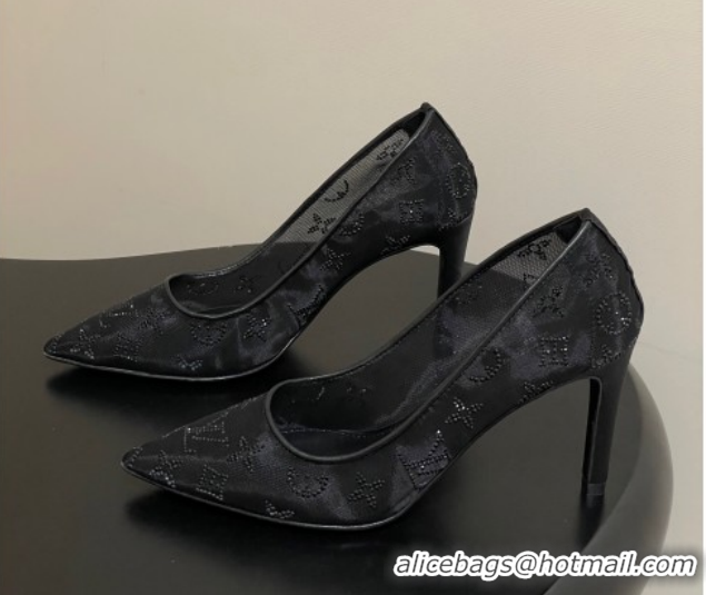 Top Grade Louis Vuitton Gala Pumps 8cm in Mesh and Strass Black 1022124