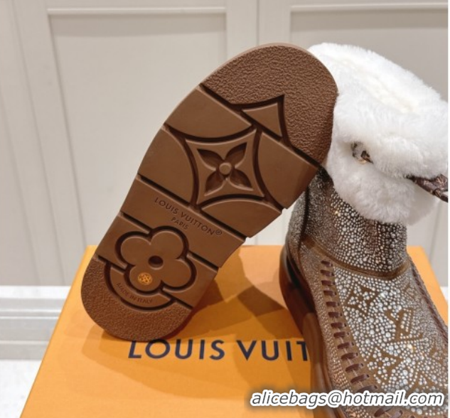 Popular Style Louis Vuitton Cortina Platform Ankle Boots in Suede with Strass Brown 1AIUEY 1219087