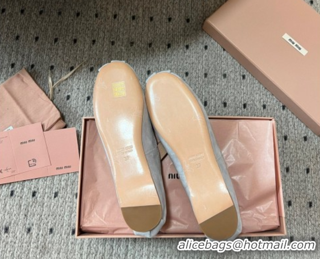 Low Price Miu Miu Suede Ballerinas Flat with Bow and Elastic Band Grey 5F794D 1025042 2025