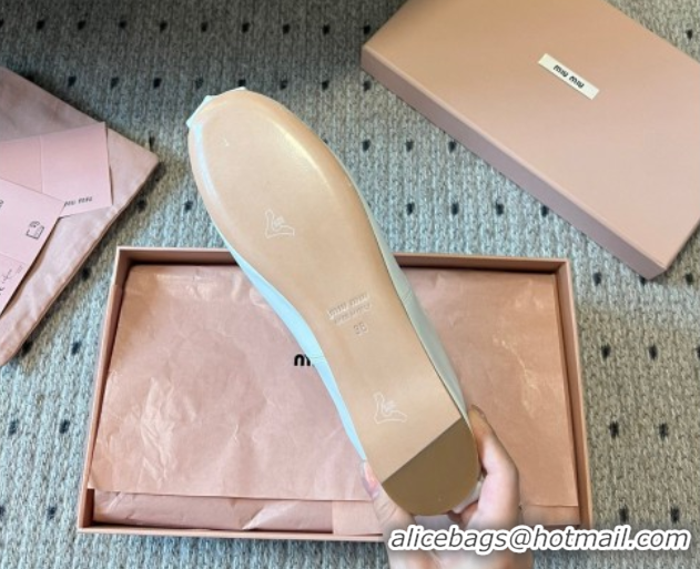 Good Looking Miu Miu Leather Ballerinas Flat with Bow and Strass Band White 5F794D 1025043 2025