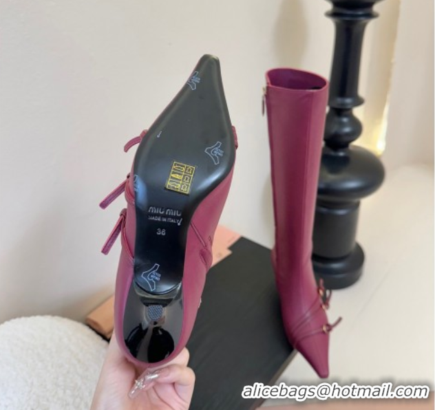 Good Looking Miu Miu Leather Low Heel High Boots with Buckle Purple 2025 MIU082603 50826022