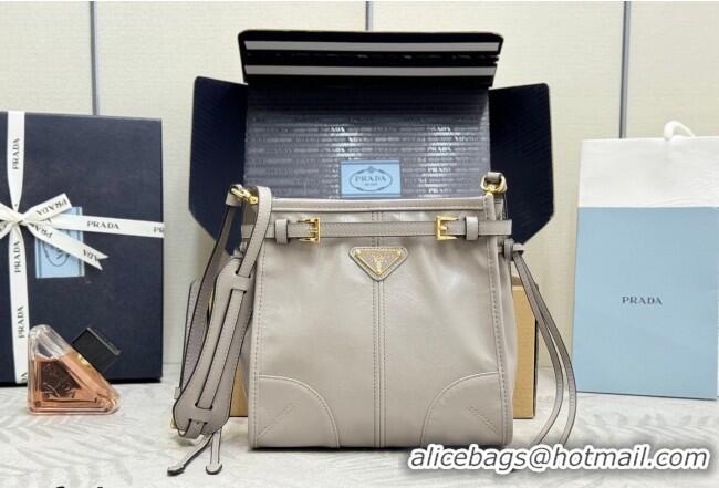 Good Looking Prada Bonnie leather mini shoulder bag 1BH229 Light Grey 2026