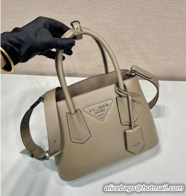 Good Looking Prada Double small Grained leather bag 1BG443 Grey 2025