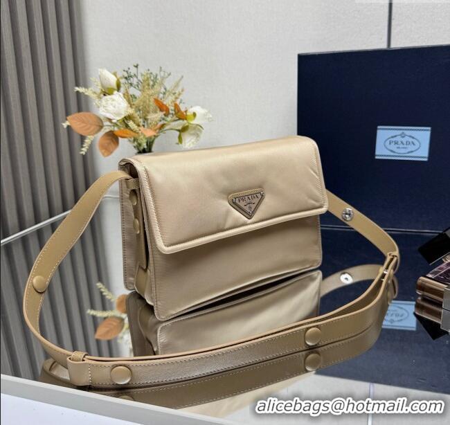 Good Looking Prada Traveller small padded Re-Nylon shoulder bag 1BD313 Beige 2025
