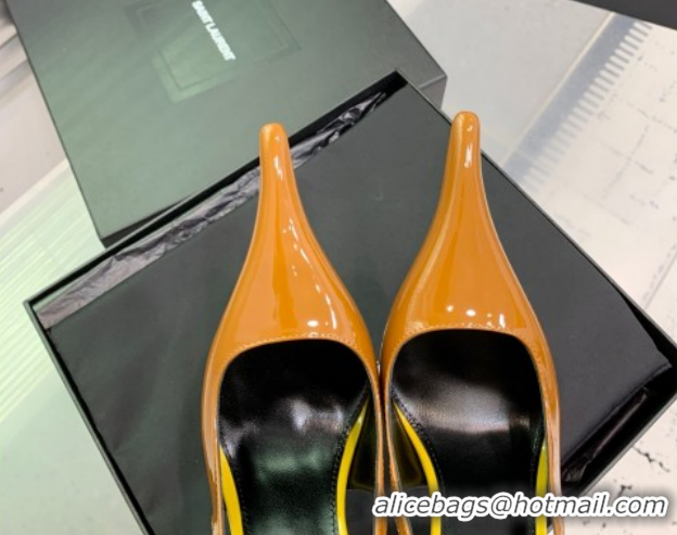 Good Looking Saint Laurent AMALIA Heel Slingbacks Pump 11cm in Patent Leather Yellow 1212090
