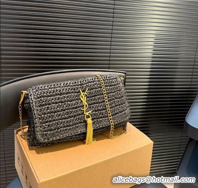 Big Discount Saint Laurent Kate Medium Chain Bag in Straw with Tassel 0723 Black 2025