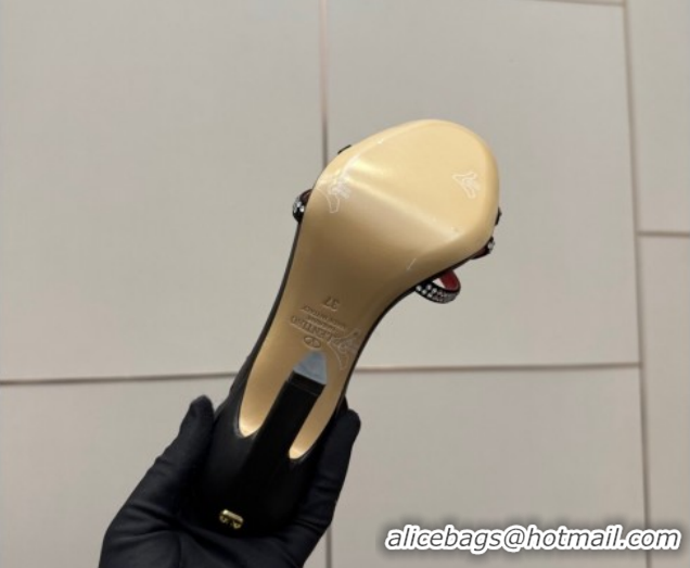 Your Position: Home > Shoes Plaza > Valentino Shoes > Shop Duplicate Valentino Calfskin Leather Heel Sandals 10.5cm with Strass Black VLTN121601 1216009