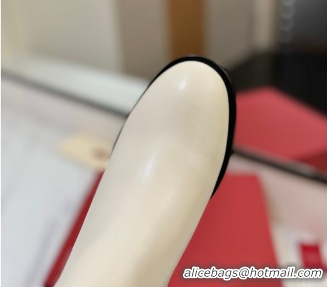 > Shoes Plaza > Valentino Shoes > Top Grade Valentino VLogo Heel Ankle Boots 5.5cm in Calfskin and Canvas White VLTN121605 1216032