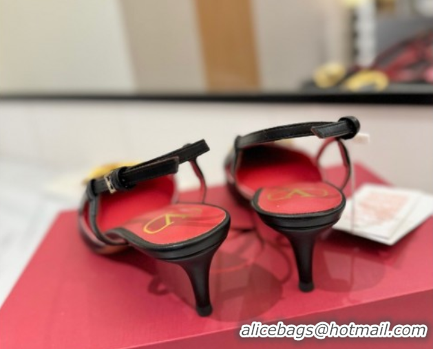 Big Discount Valentino VLogo Signature Slingback Pumps 4.5cm in Matte Calfskin Black2 2025 VA082110