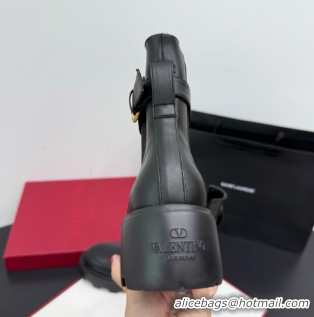Good Looking Valentino VLogo Signature Strap Heel Ankle Boots 5.5cm in Calfskin Leather Black 1028019