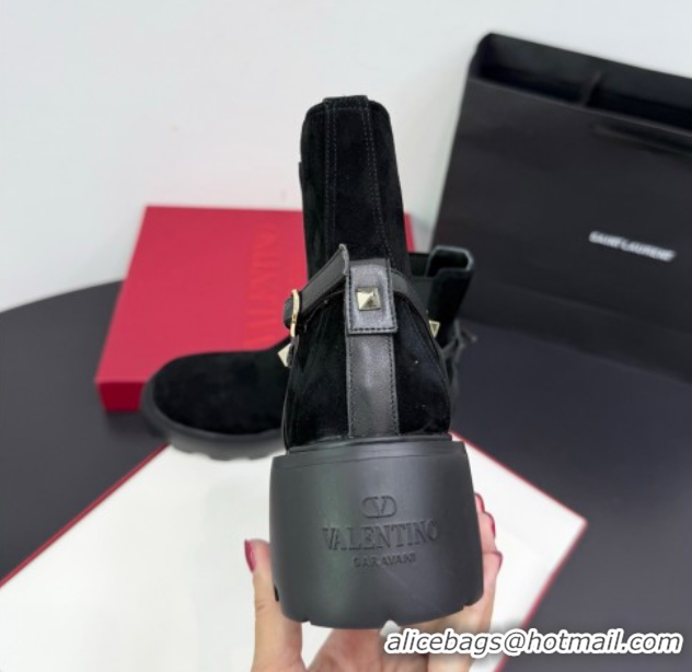 > Shoes Plaza > Valentino Shoes > Shop Duplicate Valentino Rockstud Strap Heel Ankle Boots 5.5cm in Suede Black 1028020