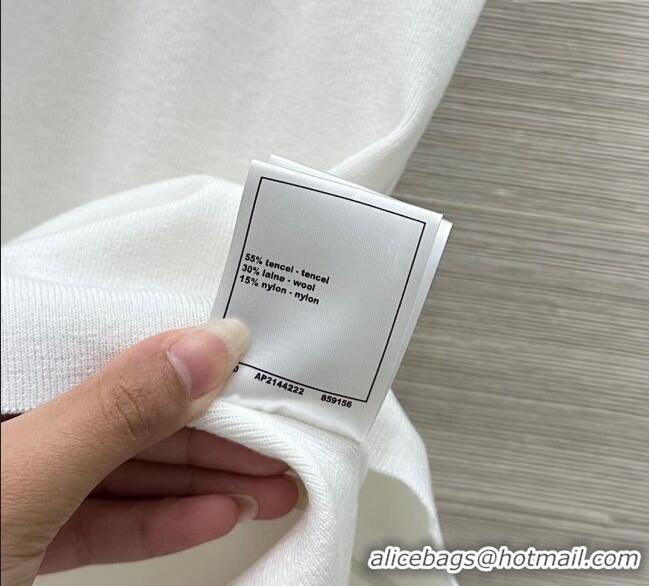 New Fashion Chanel Knit Wool Mesh Top with Logo Patch 527008 White 2025