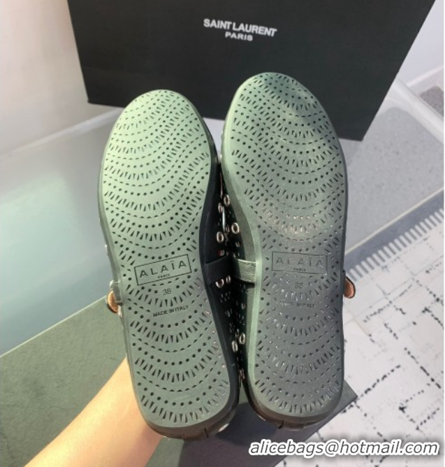 Good Product Alaia Ballet Flat in Openwork Leather with Eyelet Black Upper 1223007
