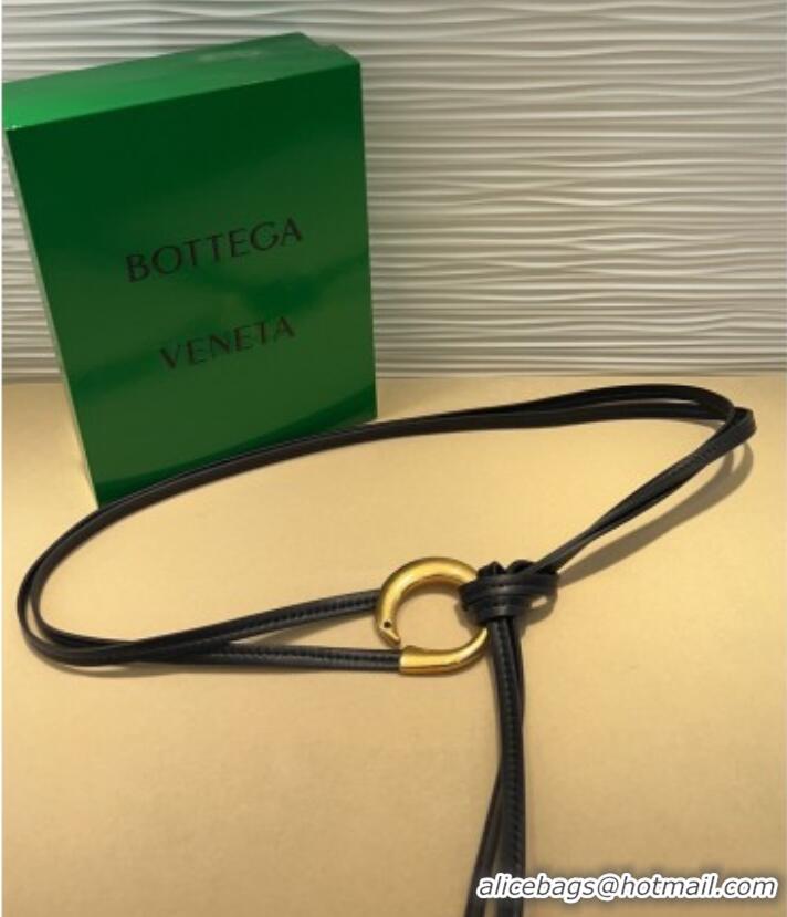 Shop Discount Bottega Veneta Women's Soft Calfskin Belt 1.5cm with Knot Buckle 0315 Black/Gold 2025