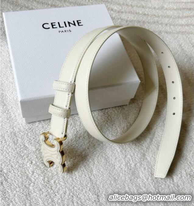 Reasonable Price Celine Calfskin Triomphe Belt 2.4cm with Leather Buckle 0317 White 2025