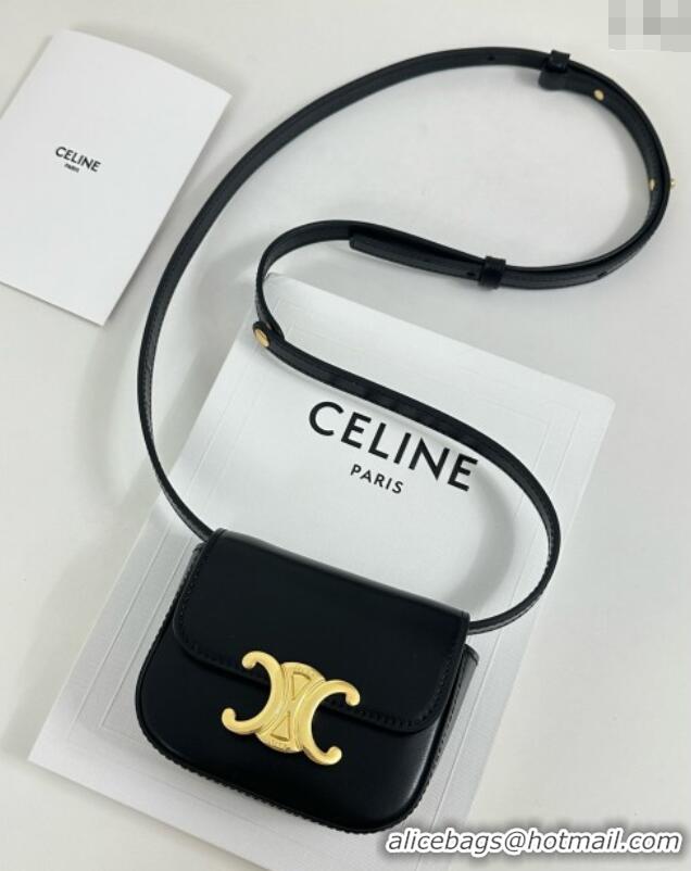 Famous Brand Celine TEEN TRIOMPHE BAG IN SHINY Original CALFSKIN MINERAL188423 black