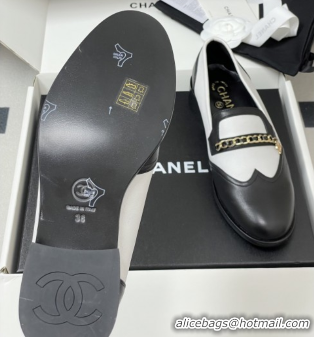 Good Product Chanel Calfskin Loafers with Chain CH9341 White/Black