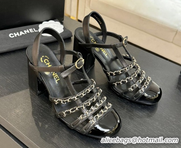 Low Price Chanel Calfskin Leather & Chain Heel Sandals 8cm G46956 Black 2026