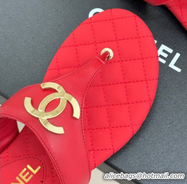 Popular Style Chanel Lambskin Leather Flat Slides Sandal CH030609 Red 2026