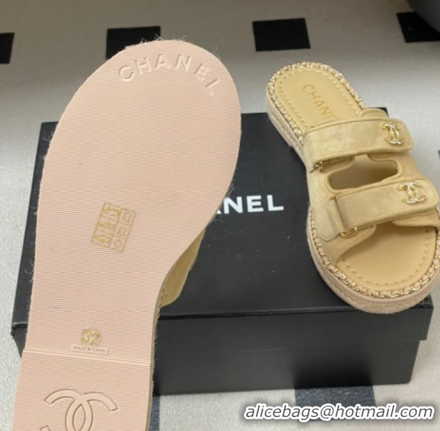 Low Cost Chanel Suede Flat Slides Sandal with Strass, Chain and Strap CH030610 Beige 2026