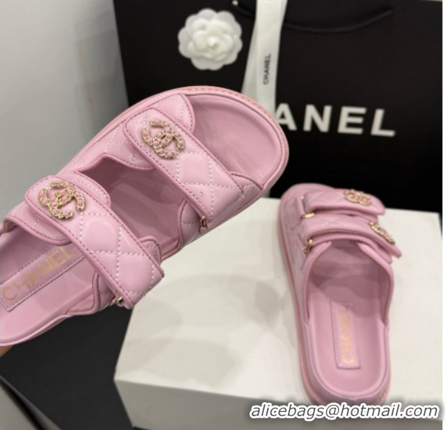 Hot Style Chanel Lambskin Leather Strap Flat Slides Sandal with Chain CC CH030614 Light Pink 2026