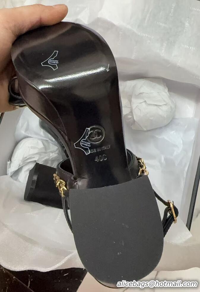 Best Price Chanel Slide Sandal Heel 11cm With Buckle Strap CH8523 Black 2025
