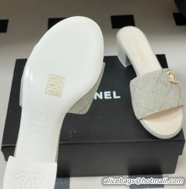 Good Quality Chanel Quilted Cotton Heel Slides Sandal 5cm CH030902 Grey 2026