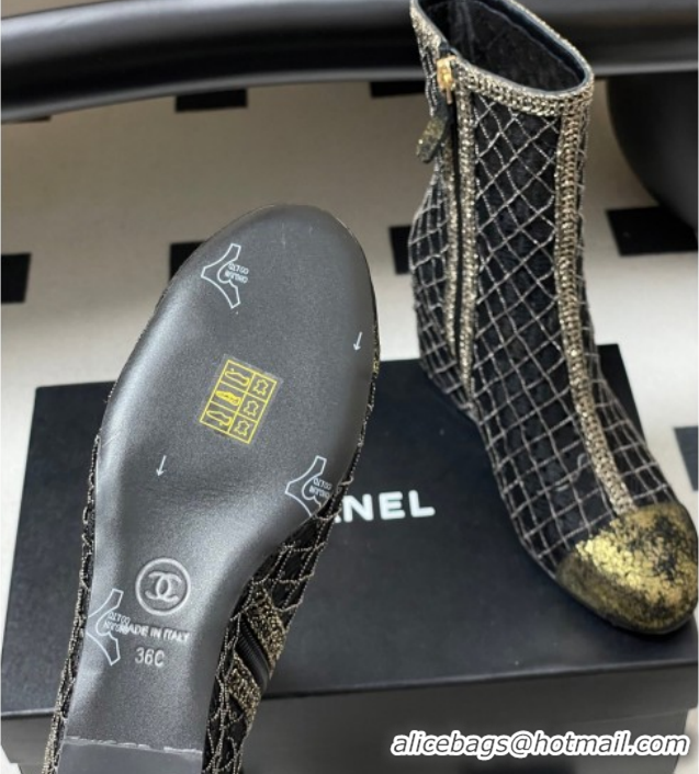 Duplicate Chanel Sequins and Mesh Wedge Ankle Boots 7.5cm CH030705 Black 2026