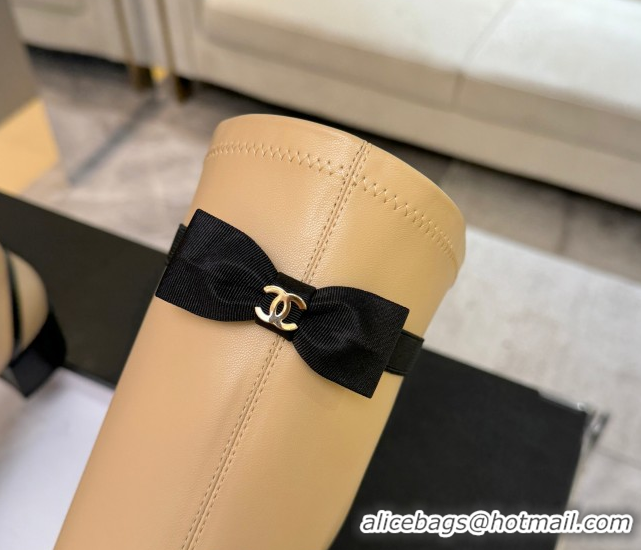 > Shoes Plaza > Chanel Shoes > Shop Duplicate Chanel Stretch Lambskin Thigh High Boots 5cm with Bow Beige 2025 G46757 1104020