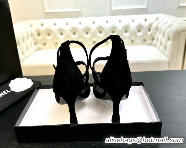 Good Product Chanel Suede Heel Sandals 8cm with Strass Buckles Black 2025 G46657
