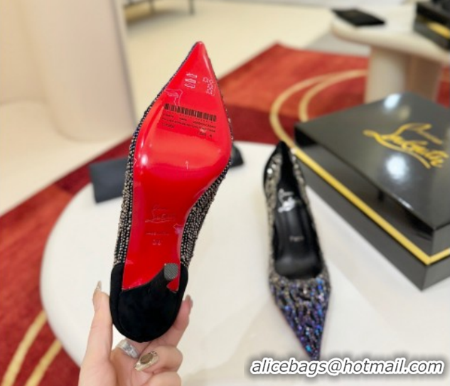 Cheap Price Christian Louboutin Miss Z Pumps 10cm in Strass and Cut-out Suede 1209103 Black 2026