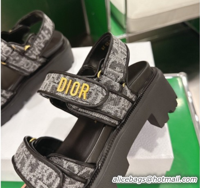 Stylish Dior Dioract Platform Sandals in Oblique Embroidered Denim Black 60302120