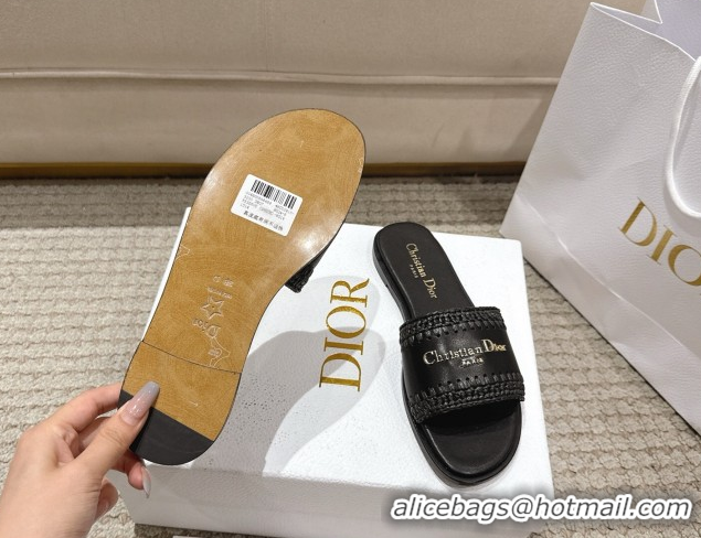 Good Product Dior Dioriviera D-Lane Flat Slides Sandal in Calfskin and Braided Raffia Black 0822108