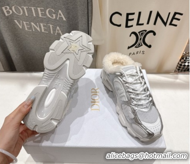 Top Grade Dior Chrono Sneaker Mules in Mesh, Leather-Effect and Wool Silver/White 51029064