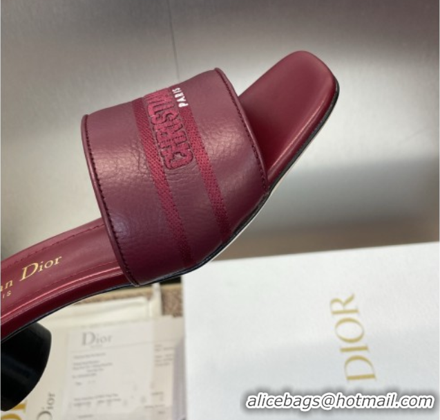 Good Product Dior Dway Heel Slides Sandal 4cm in Grained Calfskin Leather Burgundy 50822071