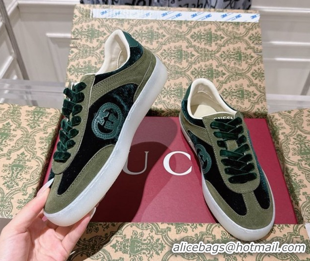 Good Product Gucci G75 Sneakers in Velvet and Suede Green 1021033