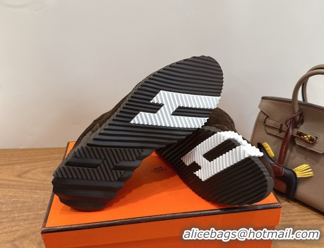 > Shoes Plaza > Hermes Shoes > Classic Hot Hermes Bouncing Sneakers in Perforated Suede Dark Brown 2026 H261013
