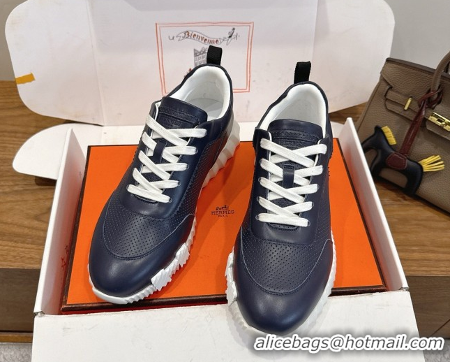 Good Product Hermes Bouncing Sneakers in Perforated Calfskin Leather Blue/White 2026 H261013
