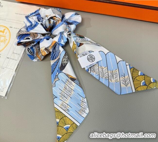 Famous Brand Hermes Tree Twilly Silk Bandeau and Hairring Set 0724 Blue 2025