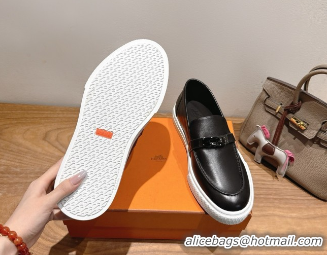 Good Product Hermes Game Smooth Calfskin Slip-on Sneakers with Kelly Buckle Black 2025 H082007 0820066