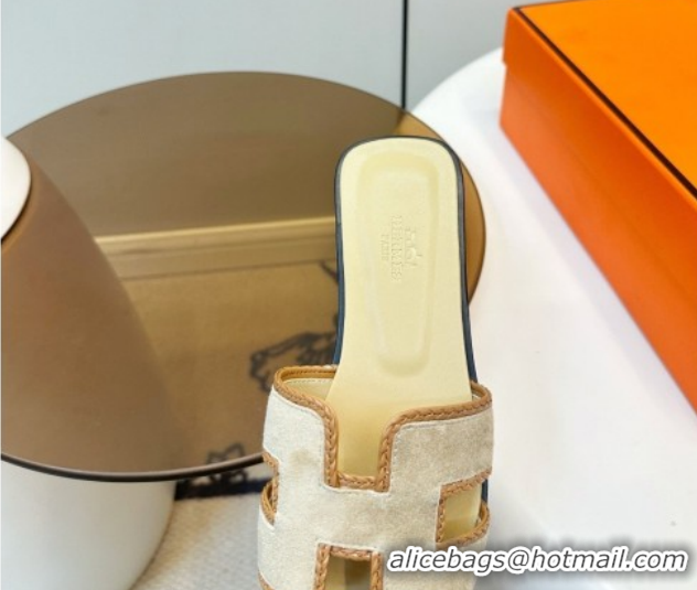 Best Product Hermes Oran Classic Flat Slides Sandal in Suede with Braided Trim Light Yellow 0304087 2026