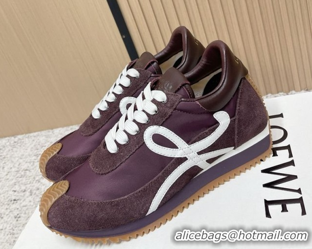 Good Product Loewe Flow Runner Sneakers in Nylon and Suede Dark Purple 0226028