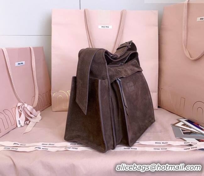 Good Taste Miu Miu Pocket Suede Messenger Bag 5BA175 Briarwood Brown 2026