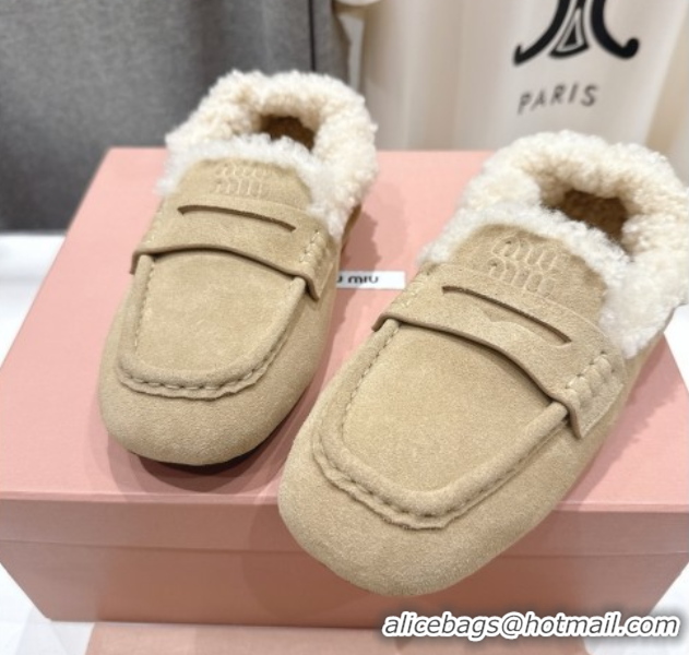 Good Product Miu Miu Ruches Suede Loafers with Shearling Beige 090603
